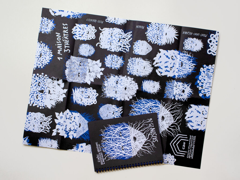 Affiches et programme de saison, affiches de spectacle et autres déclinaisons.